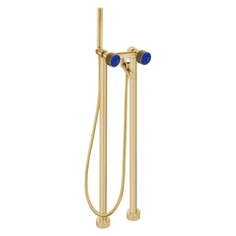 MAIER 82512 Bespoke Floor Mount Tub Filler Curved Handle and Lapis Iazuli Inlay