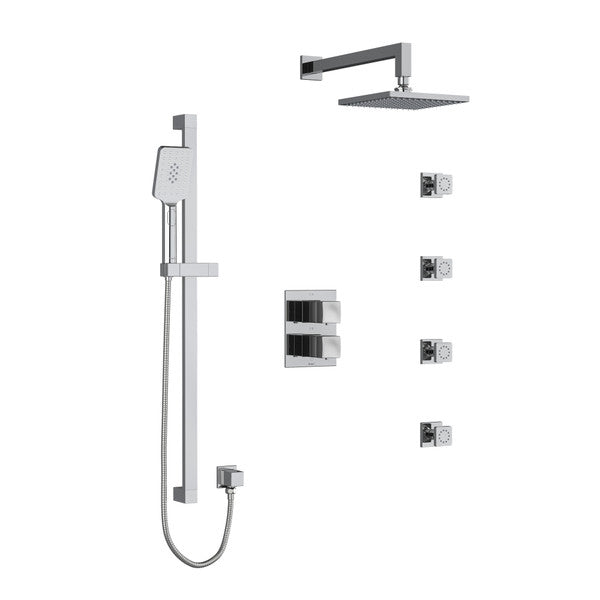 RIOBEL KIT446RF Reflet Type T/P (Thermostatic/Pressure Balance) Double Coaxial System With Hand Shower Rail 4 Body Jets And Shower Head