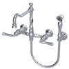 This RUBINET 8XRVL Wall Mount Kitchen Bridge Faucet features a convenient hand spray, making it easy to reach and clean all areas of the sink. This sturdy faucet is designed to be mounted on the wall, providing a sleek and space-saving option for your kitchen. Upgrade your sink with this expertly crafted faucet for maximum efficiency.
